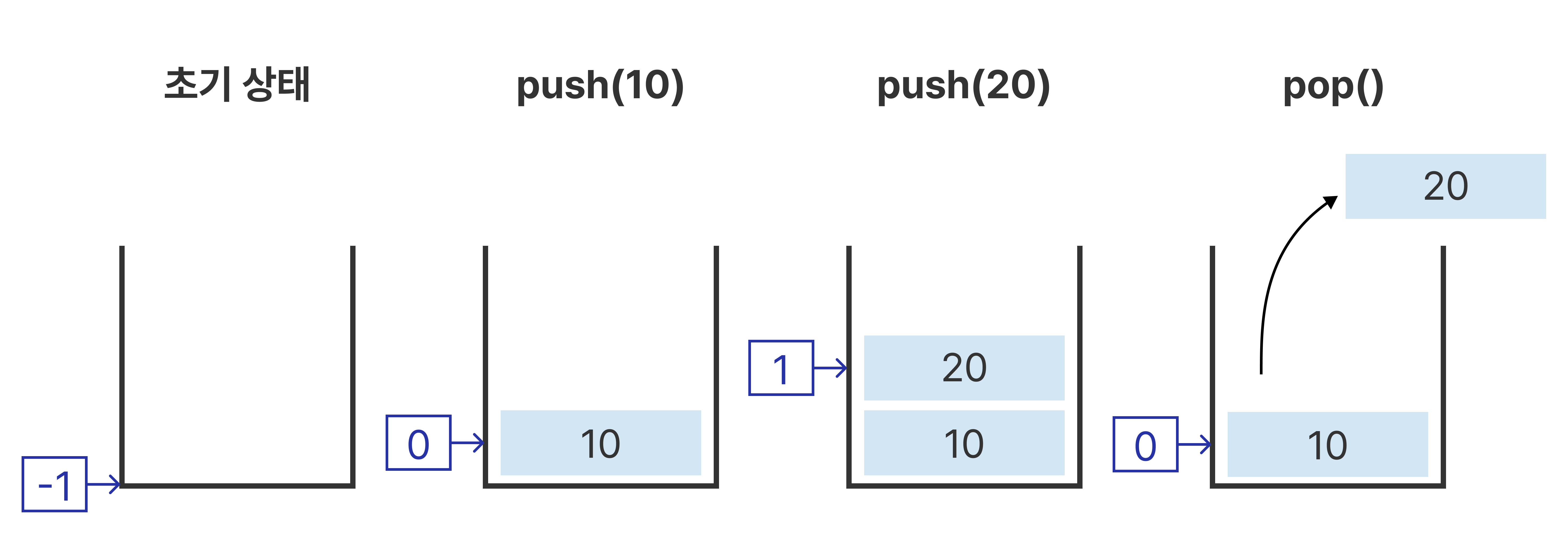 pop(): μ€νμ μ΅μλ¨μ μλ λ°μ΄ν°λ₯Ό κΊΌλ΄μ΄ λ°ννλ€. μ¦, κ°μ₯ μ΅κ·Όμ νΈμν λ°μ΄ν°λ₯Ό κΊΌλ΄μ΄ λ°ννλ€.