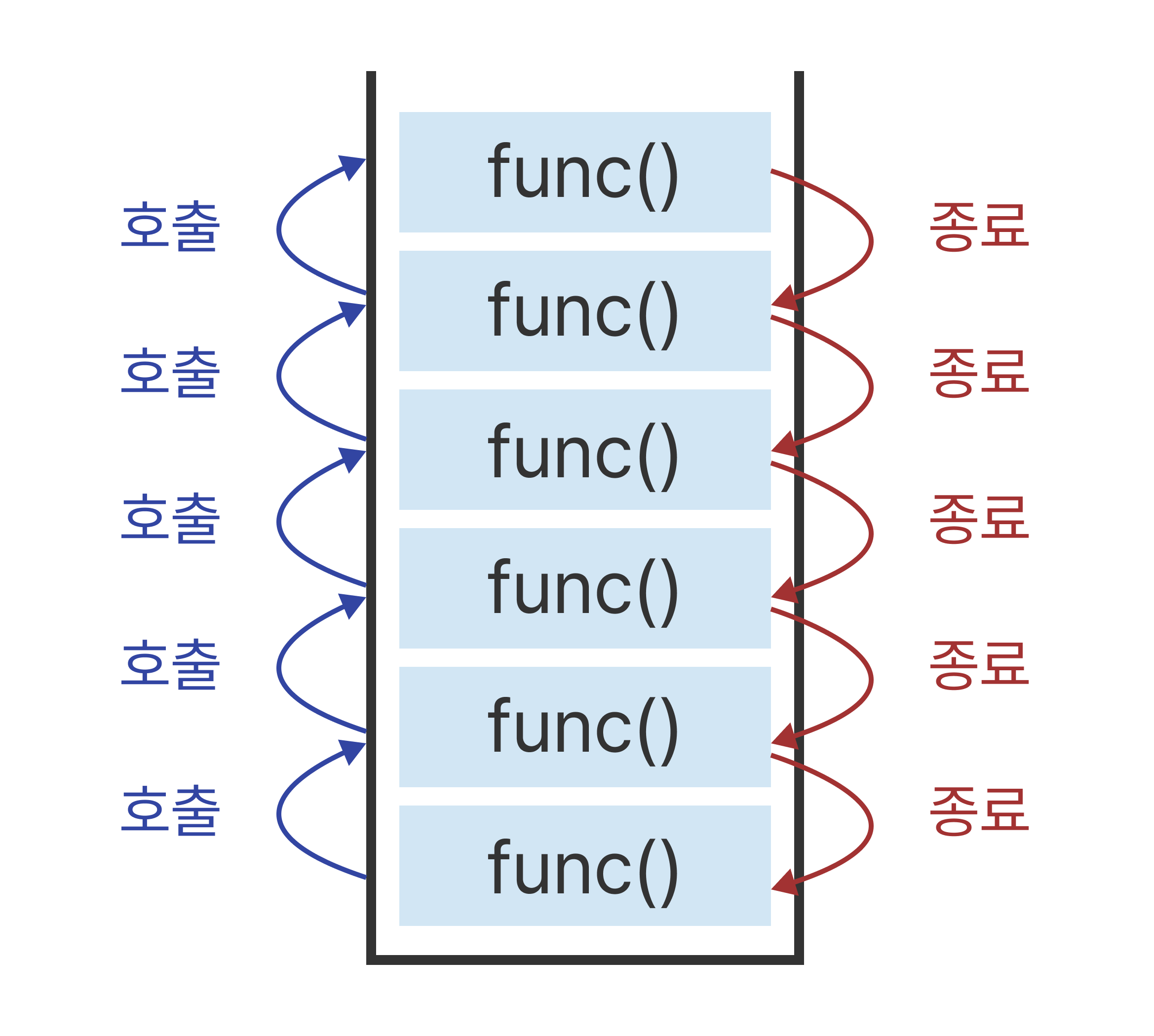 - νμ¬ μ€νλκ³ μλ ν¨μλ μ€ν μμμ μ΅μλ¨μ μμΉν ν¨μμ΄λ€.